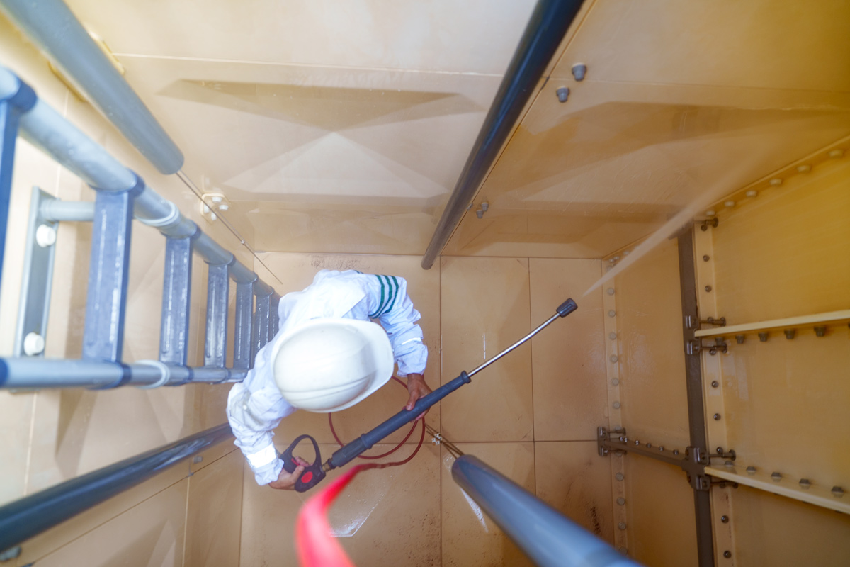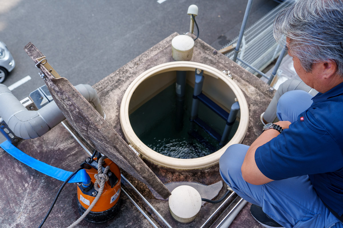 お客様のご要望に応じ、技術者が高架や地下等様々な個所へ設置された貯水槽の清掃を行います。